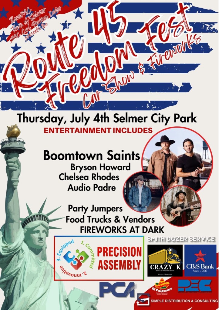 One of the greatest shows we have seen here in the south. Recommended to get there early in order to have good parking. Join us at one or the other as we celebrate the United States birthday. 248 years later!